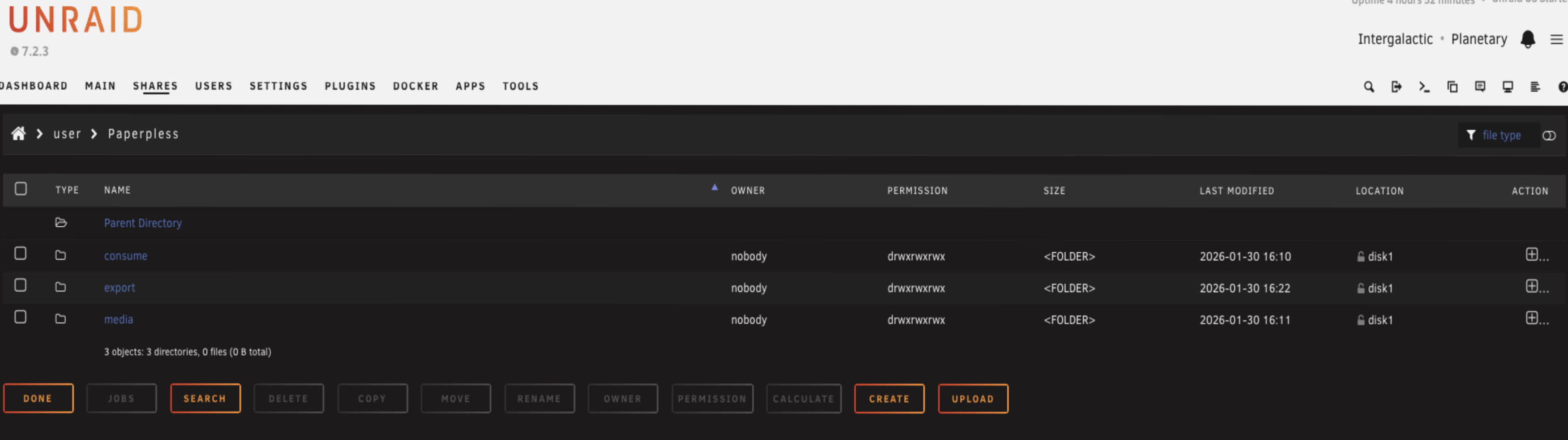 Now go into that share and create three folders. Consume, media, and export.